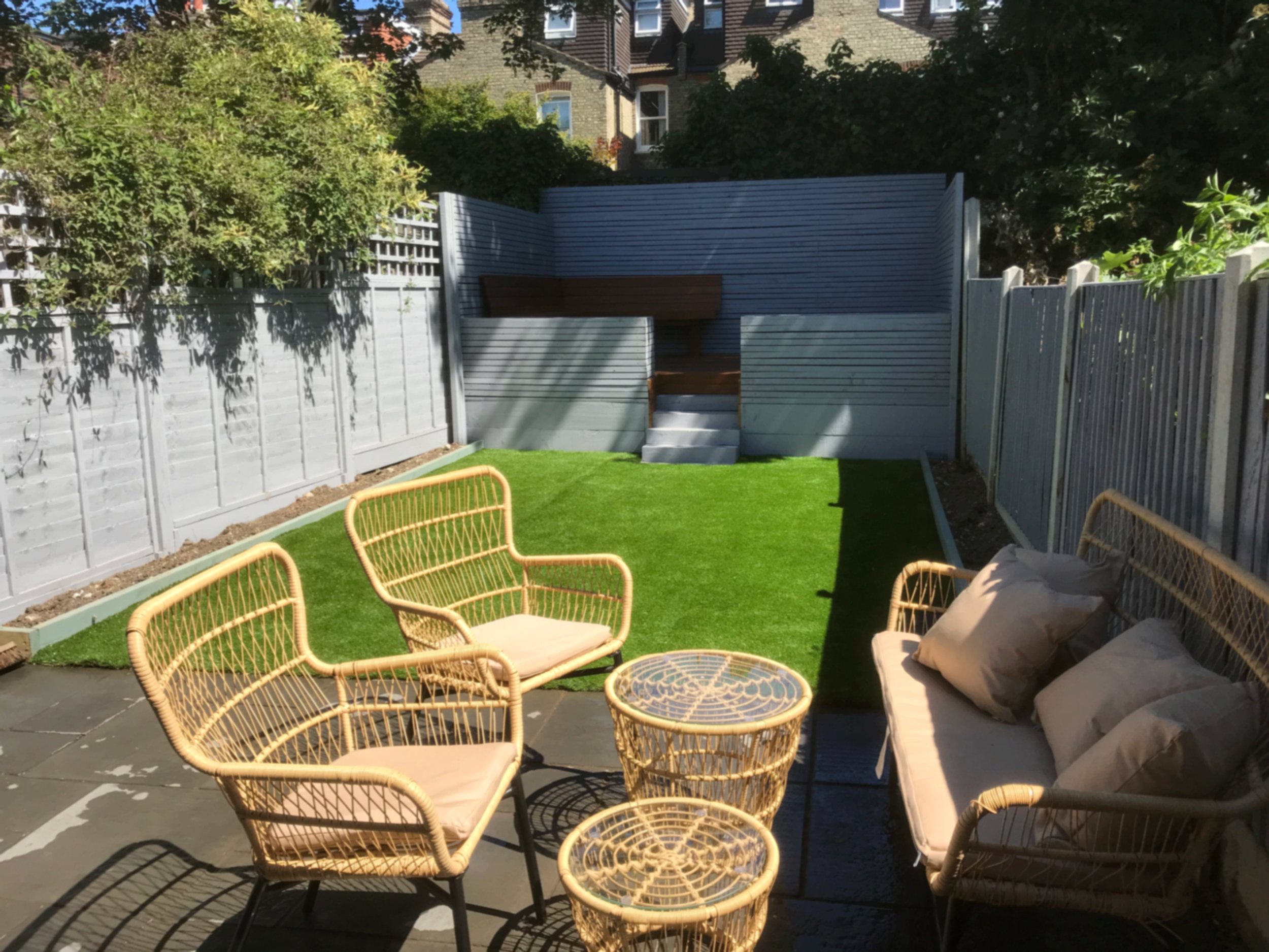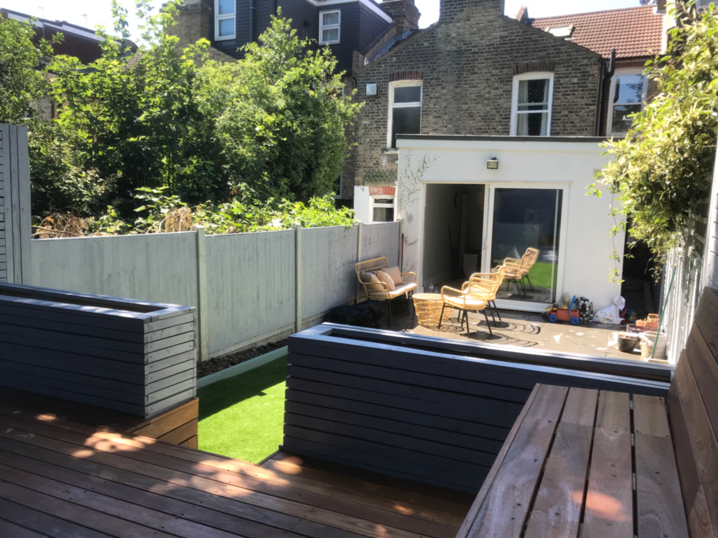 This complete garden redesign features a beautifully crafted raised deck, premium artificial grass, and bespoke sleeper stairs for a clean, modern finish. The new layout creates defined levels, improved usability, and a stylish outdoor space perfect for relaxing and entertaining. Blending quality materials with thoughtful design, this project delivers a low-maintenance garden that looks immaculate all year round.