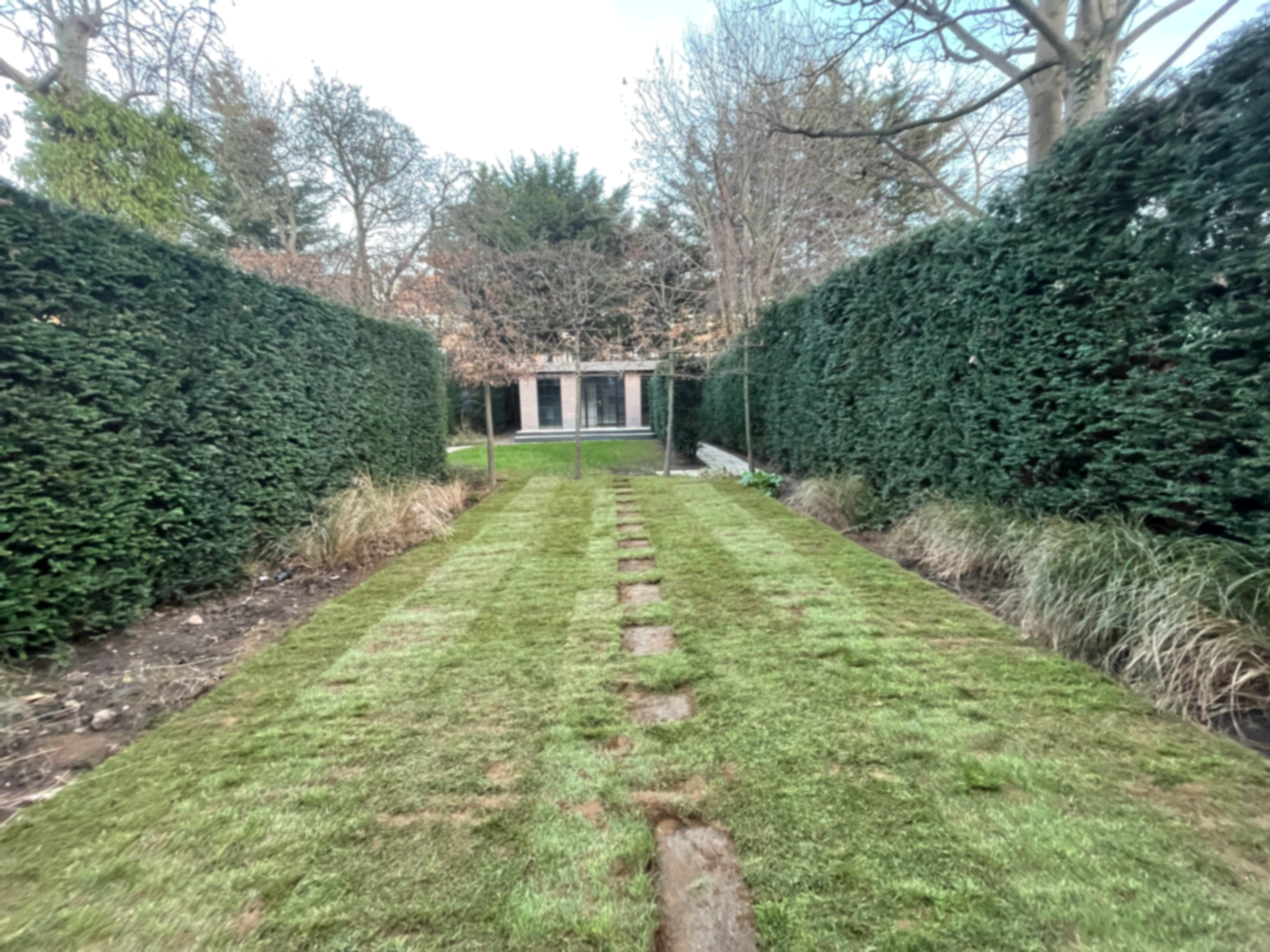 Pullinger Landscapes was tasked with reviving a tired, patchy lawn that had suffered from compaction and unevenness. The lawn was plagued by bare areas due to shade, wear, and poor drainage. Our dedicated team began by assessing the soil condition and prepared the ground through aeration and scarification to effectively remove moss and thatch. After leveling the surface and improving the soil structure with fresh topsoil, we re-seeded the area using a high-quality grass blend tailored to the site's light conditions and intended use. To ensure the new grass flourished, we implemented a regimen of regular watering, nutrient treatment, and meticulous aftercare. The transformation was remarkable; the lawn emerged vibrant, resilient, and ready for enjoyment once again. This project showcases how thoughtful preparation and expert lawn care can completely revive an outdoor space, enhancing both its beauty and functionality.